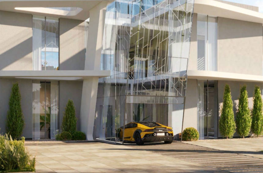 Esta residencia de cinco dormitorios cuenta con un ascensor privado para automóviles con acceso a dos niveles, permitiéndote exhibir tu vehículo como una auténtica obra de arte dentro de tu hogar.