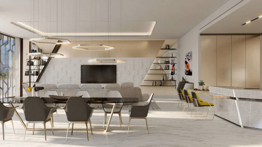 La verdadera esencia del ADN de Lamborghini se refleja en este proyecto arquitectónico futurista y elegante, complementado con interiores inspirados en el diseño de sus autos superdeportivos, gracias a una artesanía y pasión incomparables.