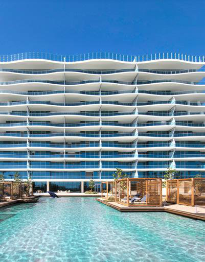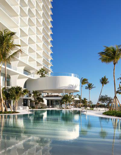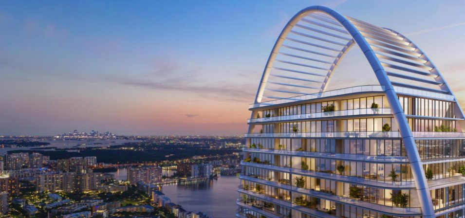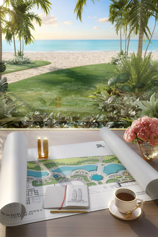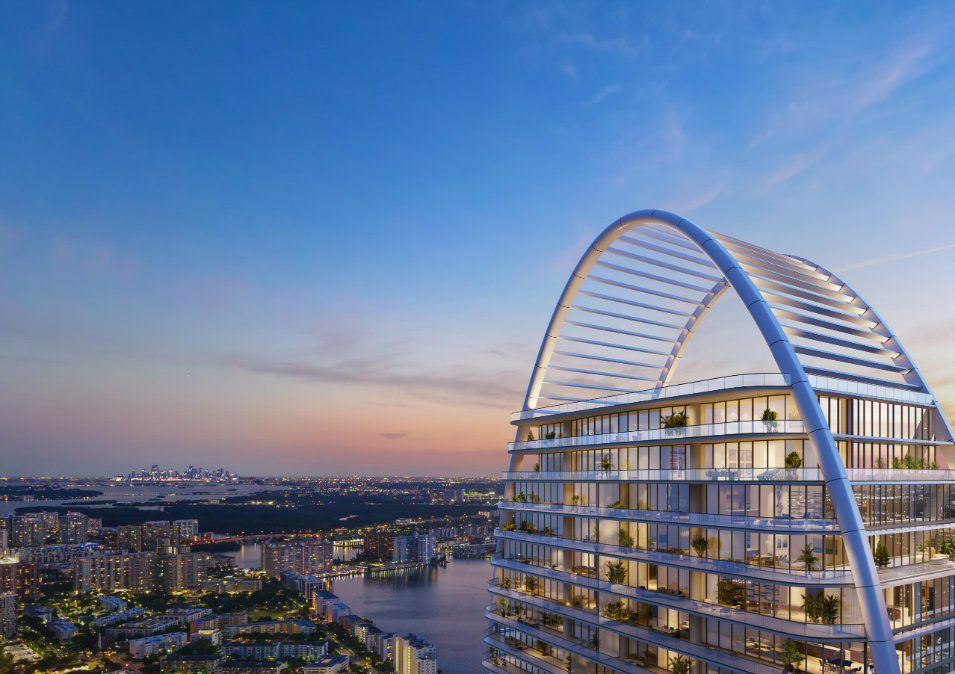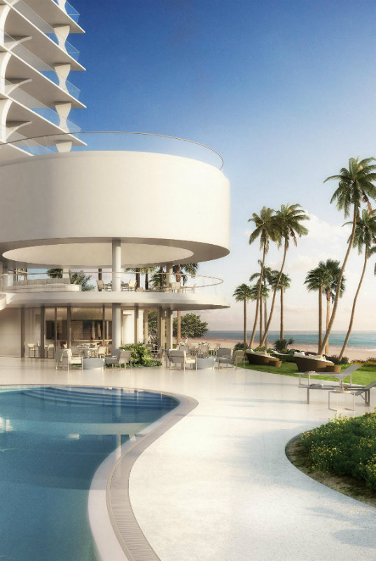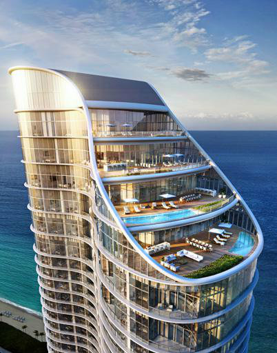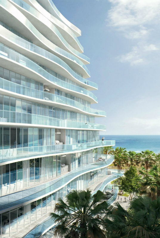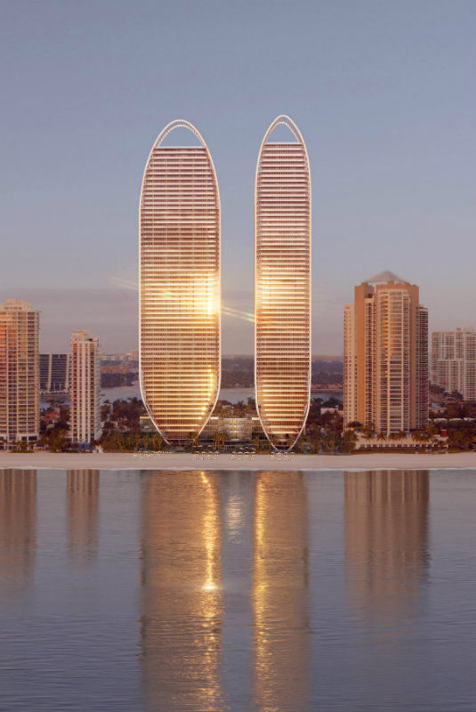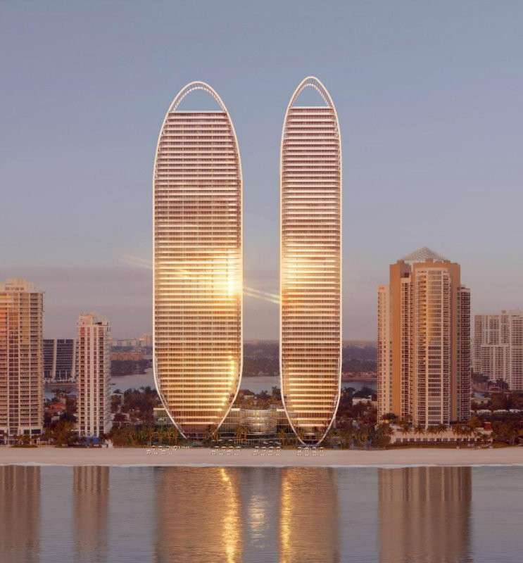 Este exclusivo proyecto residencial cuenta con dos imponentes torres de vidrio que se elevan 750 pies (aproximadamente 230 metros) sobre 132 metros de playa virgen, ofreciendo vistas panorámicas del Océano Atlántico, la bahía y el skyline de Miami.